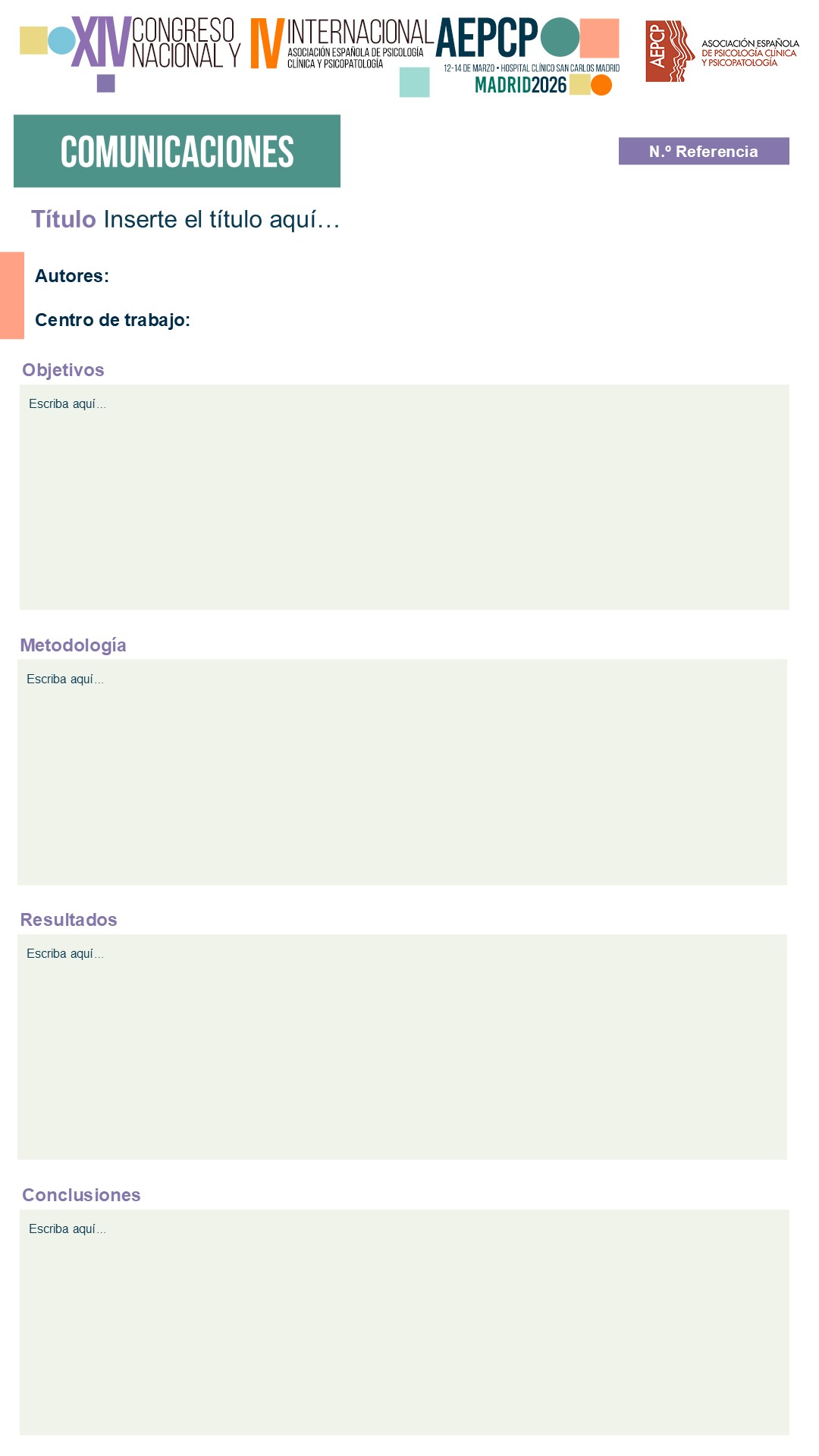 ATENCIÓN: Se informa a los congresistas que la fecha límite para introducir su póster en el Aula Virtual será el 14 de diciembre de 2025 a las 23:59 horas . Una vez finalizado el plazo, el sistema de subida de los ePoster se cerrará.